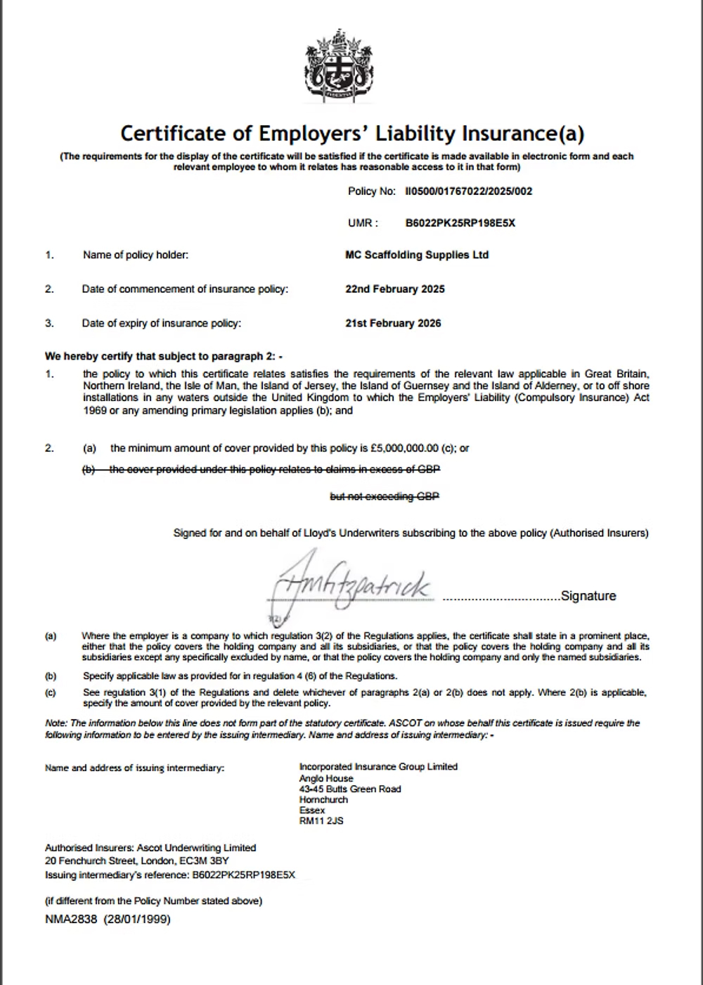 At MC Scaffolding Supplies Ltd, we take immense pride in our commitment to excellence, safety, and compliance in the scaffolding industry. Year after year, we prioritize the enhancement and maintenance of our compliance standards through platforms like Constructionline. Our dedication to ensuring that every aspect of our operations meets or exceeds industry regulations is unwavering. By actively engaging with Constructionline, we continuously refine our processes, stay updated with the latest standards, and uphold the highest levels of safety and quality in all our projects.